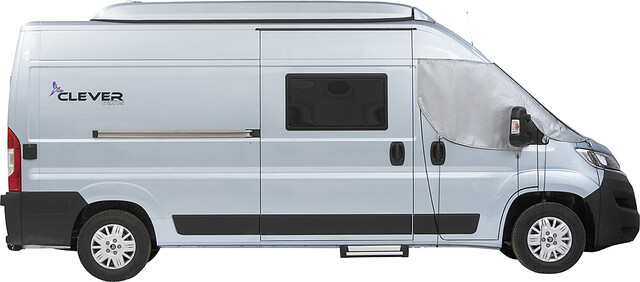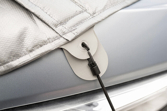 Wie bei HINDERMANN Außenisoliermatten üblich, lässt sich auch bei der CLASSIC-Version die Frontklappe öffnen. Wir empfehlen, beim Anbringen der Matte die Fahrerhaustüren leicht geöffnet zu halten um die verstellbaren Türtaschen aufzulegen. So hat die isoliermatte sicheren Halt und sitzt perfekt.
