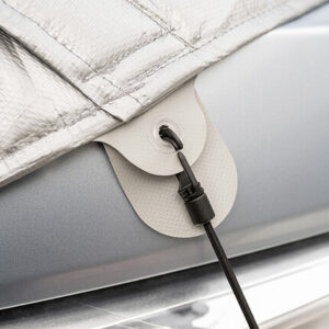 Wie bei HINDERMANN Außenisoliermatten üblich, lässt sich auch bei der CLASSIC-Version die Frontklappe öffnen. Wir empfehlen, beim Anbringen der Matte die Fahrerhaustüren leicht geöffnet zu halten um die verstellbaren Türtaschen aufzulegen. So hat die isoliermatte sicheren Halt und sitzt perfekt.