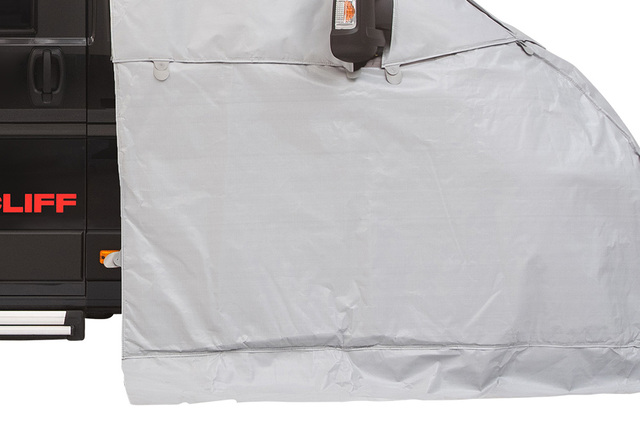 Um auch im Winterurlaub einen wirksamen Schutz vor kalter Zugluft durch den nicht isolierten Motorraum, die Radhäuser und den Fußraum zu ermöglichen, hat passend für HINDERMANN das Verlängerungsmodul LUX DUO entwickelt. Für die Verbindung mit der Fenstermatte ist oben ein Klettband eingearbeitet. Die Verlängerung besteht aus dem gleichen Material, die Isolierung ist jedoch etwas dünner, um Volumen während der Reise einzusparen. Zusammen mit dem Oberteil der passend für HINDERMANN Thermofenstermatte LUX entsteht eine 2-teilige Thermoisolierung für das komplette Fahrerhaus. So lässt sich das komplette Fahrerhaus wirkungsvoll vor eindringender Kälte schützen. Das passend für HINDERMANN Verlängerungsmodul LUX DUO kann auch nachträglich einzeln erworben werden.