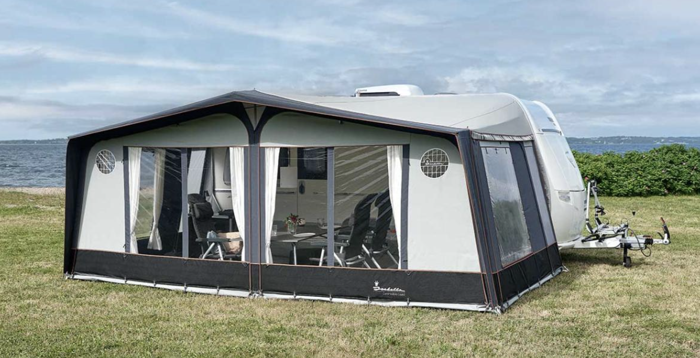 Neuheit: Der Commodore ist jetzt ebenfalls in der Farbe Etna erhältlich, die dem Umlaufmaß-Vorzelt ein klassisches und zeitloses Erscheinungsbild verleiht. Die Etna-Farbe kombiniert einen dunkleren Grauton mit einer helleren Grauschattierung, inspiriert von den erdigen Farben der Natur. Das Ergebnis ist ein harmonischer und eleganter Look, der auf dem Campingplatz eine ruhige Atmosphäre schafft. Mit der Einführung von Etna ist der Commodore nun in den Farben Dawn, Coast und Etna erhältlich.