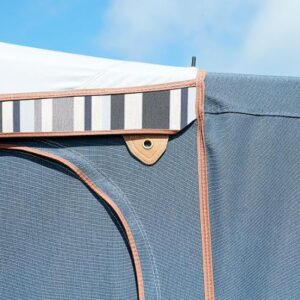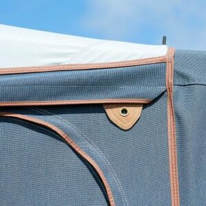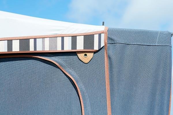 Das robuste, leichte und atmungsaktive Isacryl-Gewebe in den Vorder- und Seitenwänden sorgt, in Verbindung mit dem einseitig beschichtetem Dach (Textilunterseite), für ein gutes Raumklima.