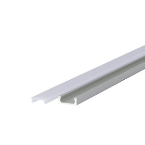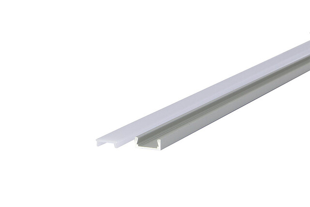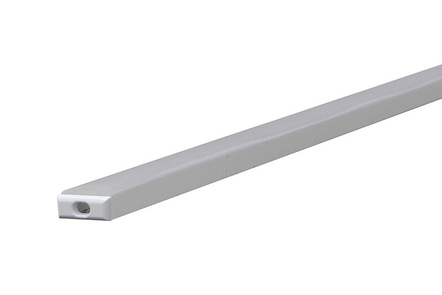 Aluprofil für LED Strip bis 10 mm Breite, 1m Länge, mit diffuser Kunststoffabdeckung und Kunststoffendkappen.