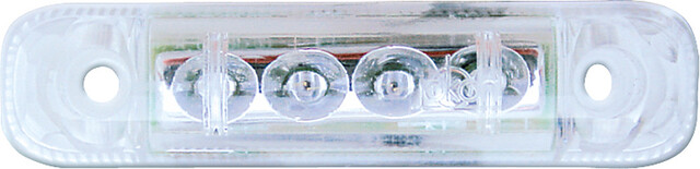Begrenzungsleuchte Aufbau mit Schraubbefestigung und Anschlusskabel mit eienr Länge von 25 cm. Bestückung mit 4 Leuchtdioden.