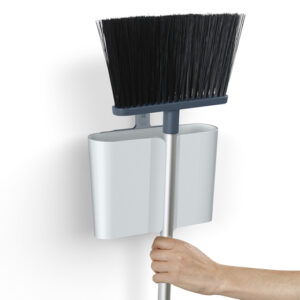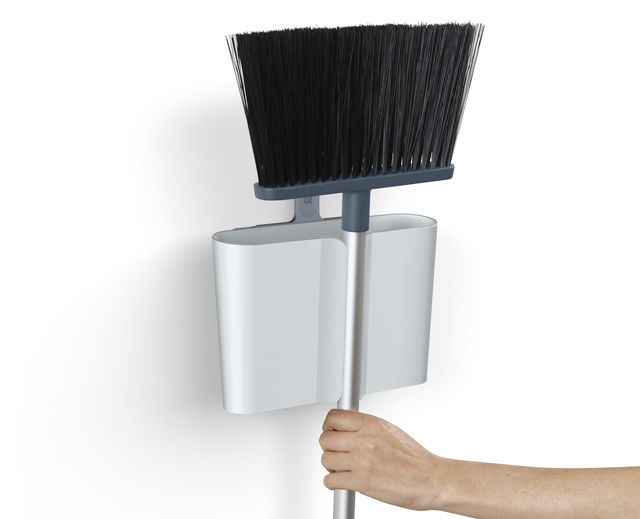 Reinigungsgeräte sind bekanntermaßen schwierig zu lagern. Lange Gegenstände fallen leicht um oder verheddern sich; Kehrschaufeln und Bürsten können sich voneinander lösen, und freiliegende Borsten und Mopps können Staub und Schmutz auf das Innere von Schränken und andere gelagerte Gegenstände übertragen. CleanStore ist ein cleveres Sortiment an Reinigungsgeräten, das die Aufbewahrung einfacher und hygienischer macht, indem es sicherstellt, dass die schmutzigen Teile des Geräts stets geschützt sind. Dieser langstielige Besen wird mit einem Dust-shield™-Halter geliefert, der an der Wand befestigt werden kann und den Kopf und die Borsten vollständig umschließt, so dass alles um ihn herum sauberer bleibt. Zum Gebrauch fassen Sie einfach den Stiel des Besens und ziehen ihn durch die Gummilaschen des leicht zugänglichen Schlitzes an der Vorderseite der Halterung. Der Besen verfügt über lange und weiche Borsten, die den Staub besser aufnehmen und sich nach außen hin leicht verjüngen, um auch in Ecken zu reinigen. Der Teleskopstiel aus Aluminium kann von 67,5 cm bis zu 110 cm verstellt werden und ist mit einem rutschfesten Griff ausgestattet. Das Gerät wird mit einem praktischen Borstenkamm geliefert, der sich im oberen Teil des Halters verstauen lässt und es Ihnen ermöglicht, die Borsten von Haaren und Staub zu befreien. Der Aufbewahrungshalter kann zum Reinigen auch leicht von der Wandhalterung abgenommen werden. Halterung, Kamm und Stange – mit einem feuchten Tuch abwischen. Inklusive Befestigungsschrauben.
