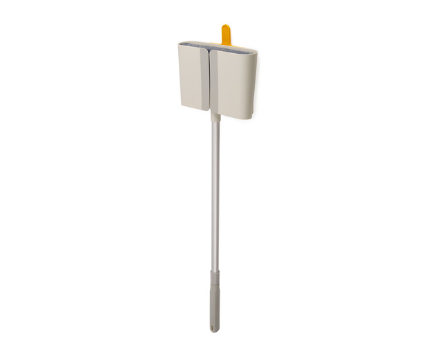 Der Besen verfügt über gefiederte Borsten, die Staub besonders effektiv aufnehmen und sanft nach außen zulaufen, um auch in Ecken zu reinigen. Der teleskopische Aluminiumstiel lässt sich durch einfaches Drehen im Uhrzeigersinn verstellen – gegen den Uhrzeigersinn wird er fixiert.