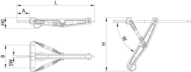 KNOTT Ausdrehstütze Hub 500 mm SW 19 ohne Gleitschiene Traglast 1.000 kg