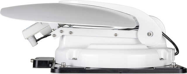 Kompakte Satelliten-Antenne mit bester Empfangsleistung. Nur 17 cm Aufbauhöhe im eingefahrenen Zustand. Single-Anschluss für einen Teilnehmer. Smartes Steuergerät mit kostenloser App für Firmware-Updates und Satelliten Auswahl. Geeignet zur Festmontage oder optional mit Mobil-Kit 3 als portable Antenne.