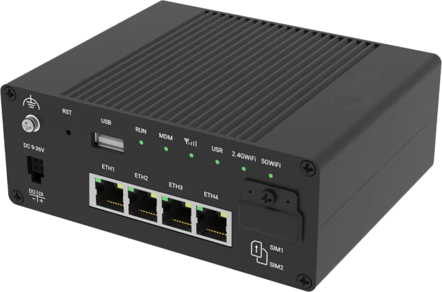 Der 5G-WiFi 6 Router mit Dual-SIM und eSIM liefert bis zu 3000 Mbit/s und sorgt dank Multi-WAN mit automatischem Failover jederzeit für eine stabile Internetverbindung. Die robuste Außenantenne mit bis zu 6 dBi Verstärkung verbessert LTE/5G- und WiFi-Empfang und lässt sich flexibel montieren. Ein GPS-Anschluss ermöglicht zudem präzise Fahrzeugortung. Firewall, VPN (WireGuard/OpenVPN), QoS und DDNS garantieren sichere Datenübertragung, während Gigabit-LAN, PoE-WAN, USB-C und TF-Slot vielseitige Anschlussmöglichkeiten bieten. Ein integrierter Watchdog sorgt für automatischen Neustart bei Störungen, während das widerstandsfähige Design den Einsatz im Outdoor- und Campingbereich zuverlässig macht.