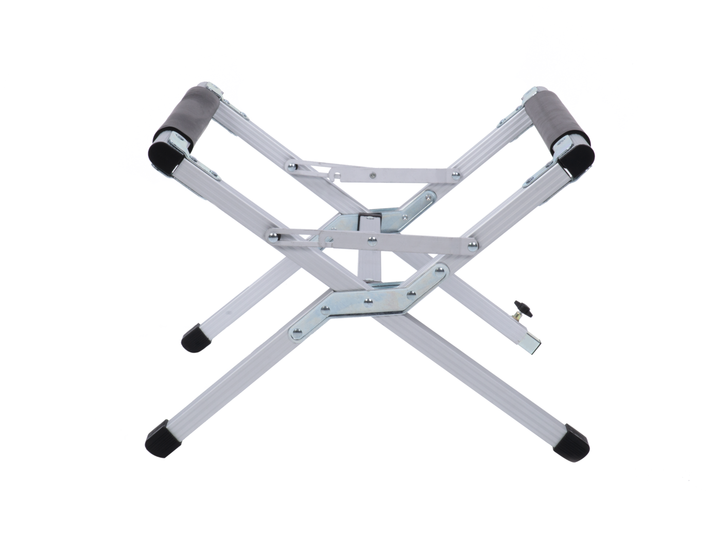 Komfortabler, klappbarer Kühlboxen-Ständer aus robustem Alu-Vierkantrohr mit Bodenschonern und gepolsterten Auflageprofilen.