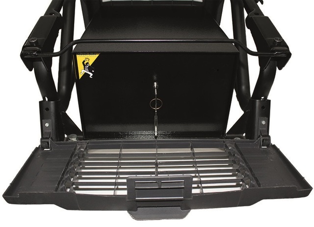 Befestigung über die werksseitigen Verschraubungen der Sitzkonsole. Die Konsolenverkleidung bleibt unverändert. Dieser Safe ist auch mit Elektronikschloss lieferbar.