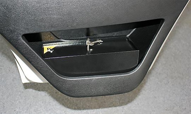 Der Safe wird anstelle der Kartentasche an der Fahrer- oder Beifahrertür, mit den originalen Befestigungspunkten der Kartentasche verschraubt.