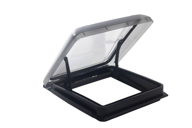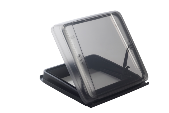 Rauchglas-Dachhaube mit Doppelverglasung, wahlweise mit oder ohne Dauerlüftung und ansprechendem Innenrahmen mit Doppelplissee.