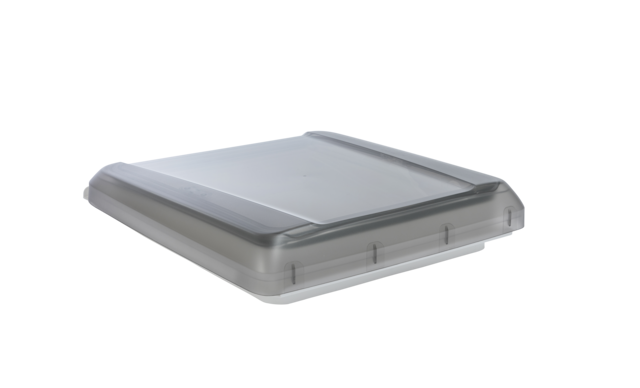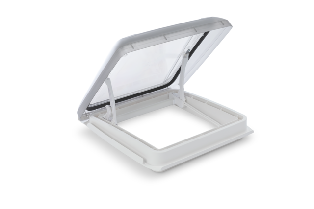 Rauchglas-Dachhaube mit Doppelverglasung, wahlweise mit oder ohne Dauerlüftung und ansprechendem Innenrahmen mit Doppelplissee.