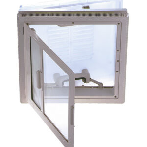 MPK Dachluke Modell 42 Ausschnittmaß 40 x 40 cm mit Moskitonetz und Roll Farbe Rahmen grau