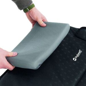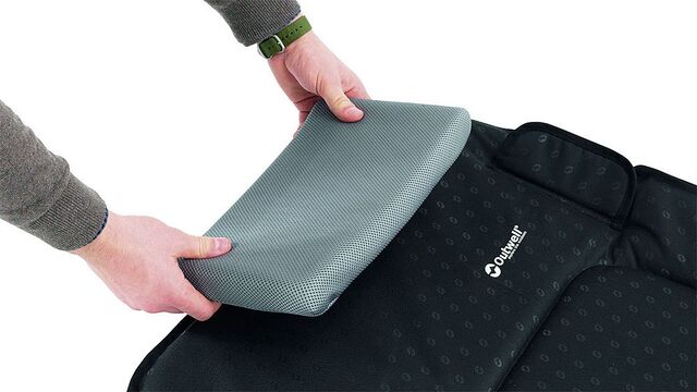 Lässt sich in Sekunden öffnen und schließen. Hoher Komfort, trotz geringem Packmaß. Klettband, um den Rahmen geschlossen zu halten,wenn das Feldbett geschlossen ist.