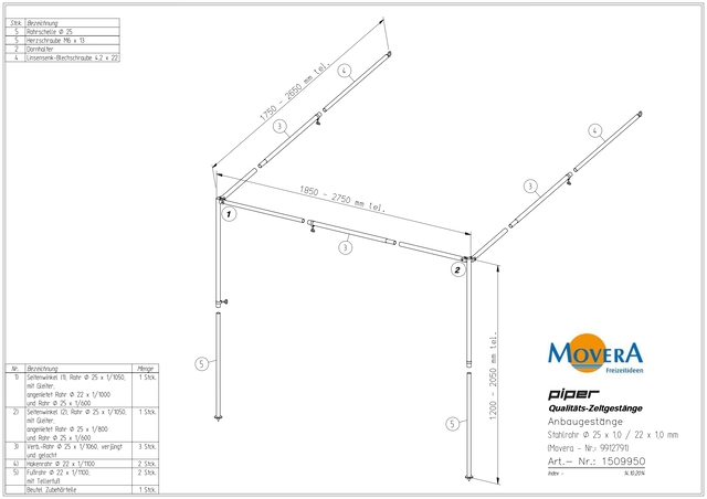 Anbaugestänge Tiefe 2650 mm, R 25/22 Stahl