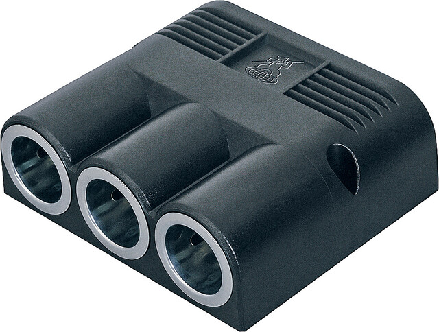 Aufbau-Dreifachsteckdose mit einem Innendurchmesser von 21 mm, max. 20 A bei Kabelquerschnitt 2,5 mm², 16 A bei 1,5 mm².