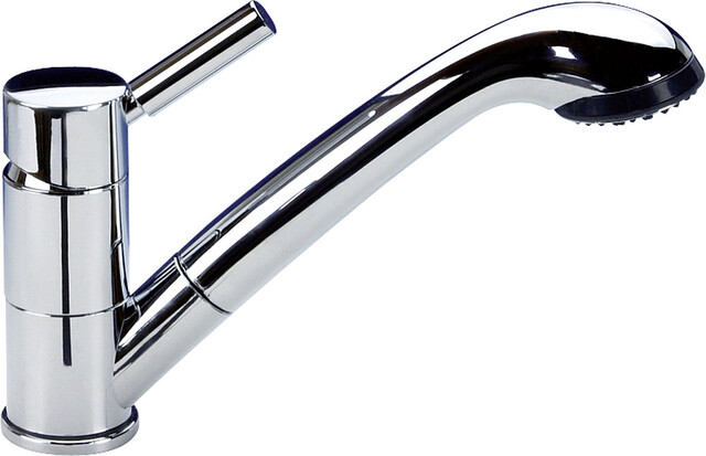 Design-Armatur Keramik Trend E mit herausziehbarer Brause Julia, Keramikkartusche und wasserdichtem Schalter (IP 67).