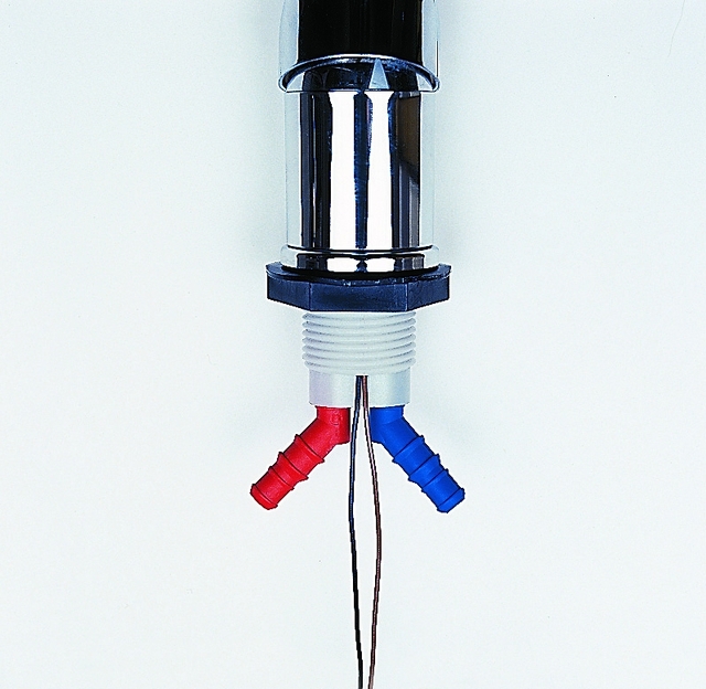 Mischbatterie Deluxe mit Schalter. Zwei Montagebohrungen notwendig.