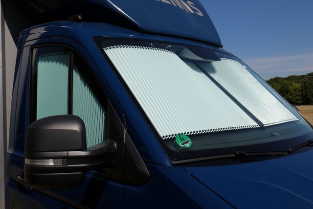- Einfache und schnelle Abdunkelung und Privatsphäre durch das an der Frontscheibe verschließbare Verdunkelungssystem mit einer einfachen Klapp- und Schiebebewegung (links und rechts Schieberichtung)