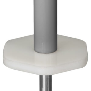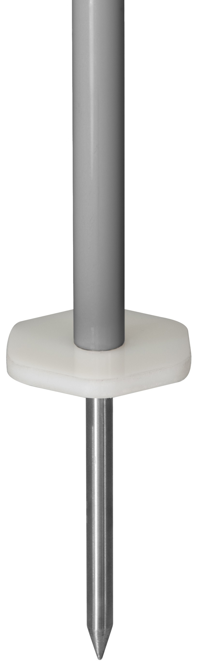 Stahl-Gestell silbergrau pulverbeschichtet, Stock zweiteilig 19/22 mm Durchmesser (Ober-/Unterstock), mit abschraubbarem Bodenspieß und Fußplatte.