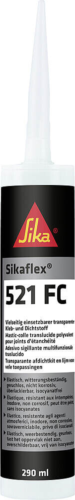 Sikaflex-521 FC ist ein vielseitig einsetzbarer Kleb- und Dichtstoff, der auf vielen Untergründen wie z.B. Glas, glasierten Oberflächen, Email und lackiertem Holz ohne Primer eingesetzt werden kann. Das Produkt ist elastisch, geruchsarm und witterungsbeständig.