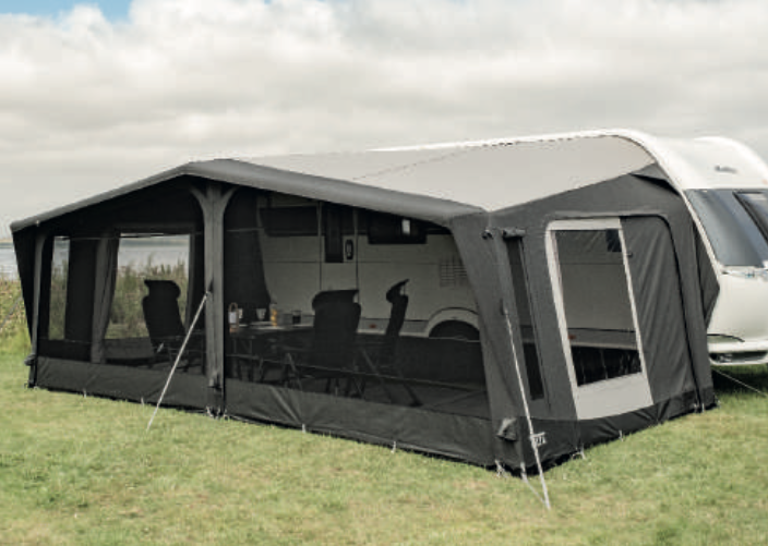 Aus hochwertigem Netzmaterial gefertigt, ersetzen die optionalen Netzpaneele die Standard-Reißverschlusspanels, um die Luftzirkulation zu verbessern und Insekten fernzuhalten. Eine sanfte Brise kann durch das Vorzelt zirkulieren, während ein außenliegender Rollladen an den Seitenwänden und ein integriertes Vordach an der Front Schutz vor Witterung bieten.