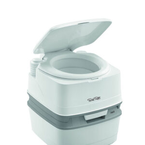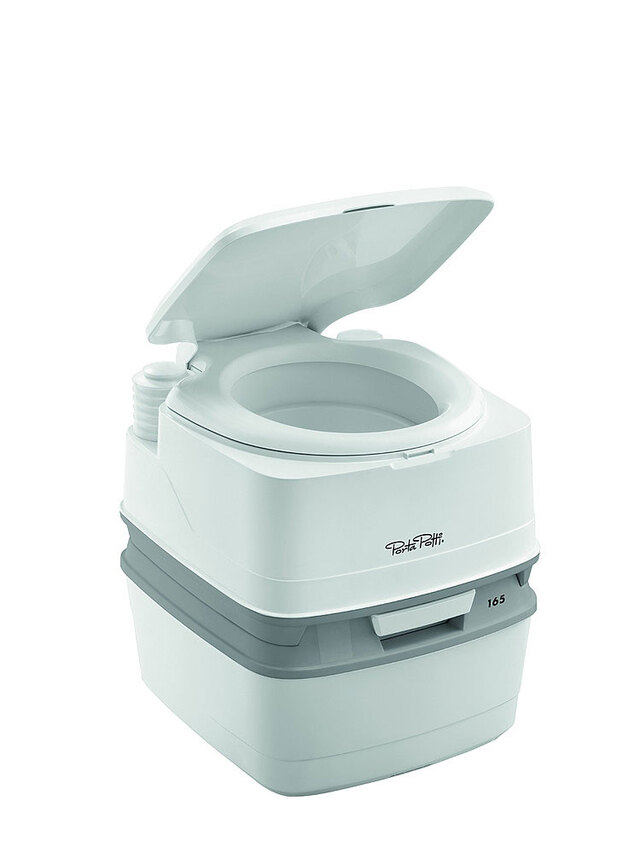 Die Porta Potti ist die Grundlage für langlebige tragbare Toiletten. Die Toilette verfügt über eine integrierte Deckelverriegelung, eine Aussparung zum Öffenen des Deckels, einen verbesserten Schiebegriff, sowie einen bequemeren Griff für den Fäkalientank. Der Stopper am Fäkalientank hält den Entleerungsstutzen in seiner Stellung fest und macht das Wiedereinsetzen der beiden Tanks noch einfacher.