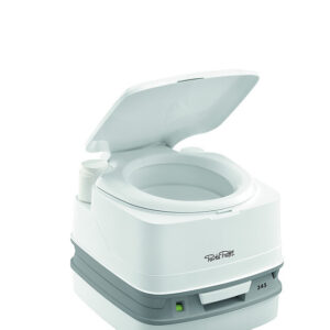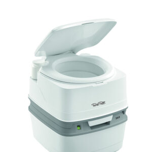 Die Porta Potti ist die Grundlage für langlebige tragbare Toiletten. Die Toilette verfügt über eine integrierte Deckelverriegelung, eine Aussparung zum Öffenen des Deckels, einen verbesserten Schiebegriff, sowie einen bequemeren Griff für den Fäkalientank. Der Stopper am Fäkalientank hält den Entleerungsstutzen in seiner Stellung fest und macht das Wiedereinsetzen der beiden Tanks noch einfacher.