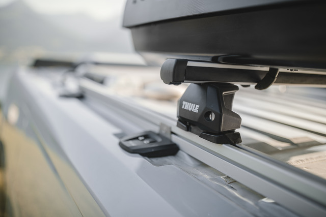 Flexible Dachträgerlösung für Vans mit Zubehör. Montage 10 cm vom Rand nach innen auf dem Dach. Passend für Dachzubehör und Dachträger für Sportausrüstung (muss separat gekauft werden).