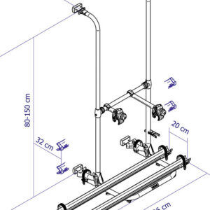 Dieser kompakte Fahrradträger ist geeignet für Vans mit Doppelhecktüren und für Fahrzeuge mit gebogenen hinteren Wand dank eines 4-Punkt-Befestigungssystem. Es wird mit Schrauben und Befestigungsplatten durch die Tür montiert. Der erhöhte Abstand von 20 cm zwischen den Schienen ermöglicht eine einfache Last der Fahrräder. Die Türen können mit geladenen Fahrräder geöffnet werden.