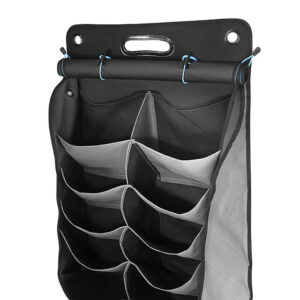 Mehrere großzügige Stautaschen bieten Platz für viele Paare Schuhe. Die stabile Anbringung des Organizers an das POD-System wird durch Kelttverschlüsse und zusätzliche Druckknöpfe sichergestellt.