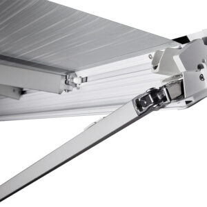 - Die patentierten Spannarme sind serienmäßig integriert bei Markisen ab einer Länge von 4,02 m