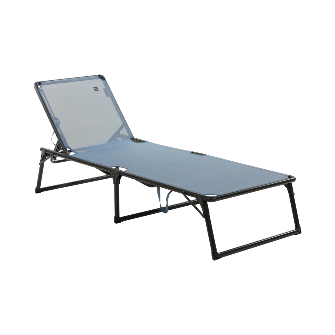 Legen Sie die faltbare Como-Liege zurück und entspannen Sie sich. Die Sonnenliege hat einen Bezug aus Textilene (100 % Polyester): ein wetterfestes und atmungsaktives Material. Die Farbe des Stoffes verblasst nicht und trocknet schnell. Dank der Tragegurte und des leichten Gestells ist die Liege leicht zu transportieren.