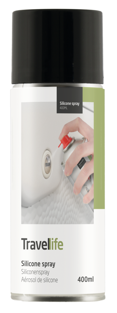 Silikonspray TRAVELLIFE. Mit dem Travellife Silikonspray verlängern Sie die Lebensdauer Ihrer Toilette und halten Teile wie Schlösser, Scharniere und Markisenschienen geschmeidig. Das Spray schützt Materialien wie Kunststoff und Gummi vor Austrocknung. Innen und außen verwendbar.