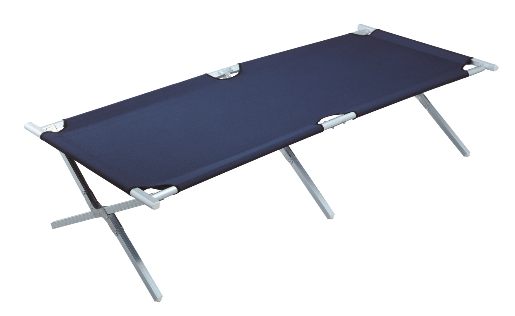 Alu-Feldbett. Ultra leichtes Alu-Feldbett. Bezug aus strapazierfähigem Polyester 600D, PVC-beschichtet. Gestell aus eloxiertem Aluminium, ø 32 x 25 mm. Mit Transportta-sche. Belastbarkeit 100 kg.