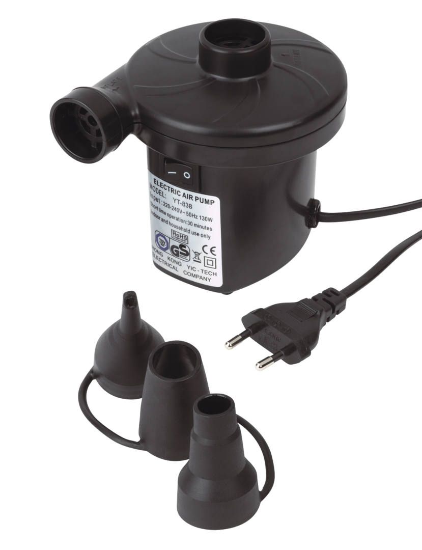 Elektropumpe 230 V. Inklusive drei Adapterstücken. Anschlussspannung 230 V.