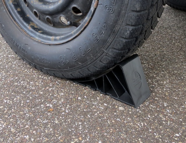 Der Radkeil verhindert Unfallgefahren durch Wegrollen des Anhängers.