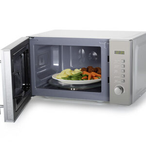 Die hochglanz-verchromte Tür mit Spiegelverglasung gibt diesem Gerät den ganz besonders edlen „Style“. Das Gerät verfügt über einen integrierten Grill und 8 vordefinierte Kochprogramme zur Bereitung feiner Gerichte. Einstellbarer Timer und Kindersicherung.