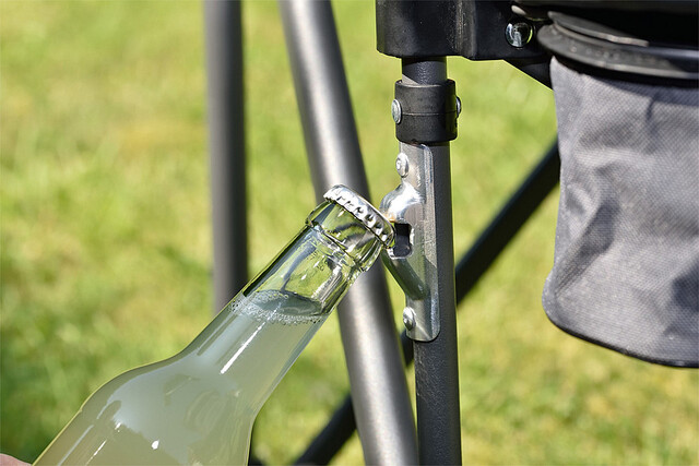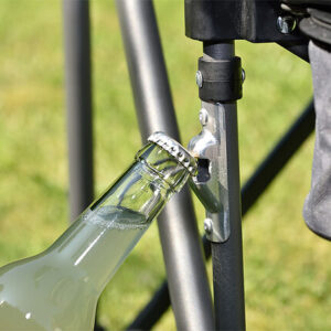 Robuster Faltstuhl inklusive Flaschenhalter und Flaschenöffner. Das pulverbeschichtete Stahlgestänge und das abriebfeste Ripstop-Polyester-Gewebe sind besonders langlebig. Du bist auf dem Weg zu einem verregneten Festival, dem Strand, deinen Garten? Dann nimm doch einfach diesen einmaligen Faltstuhl mit.