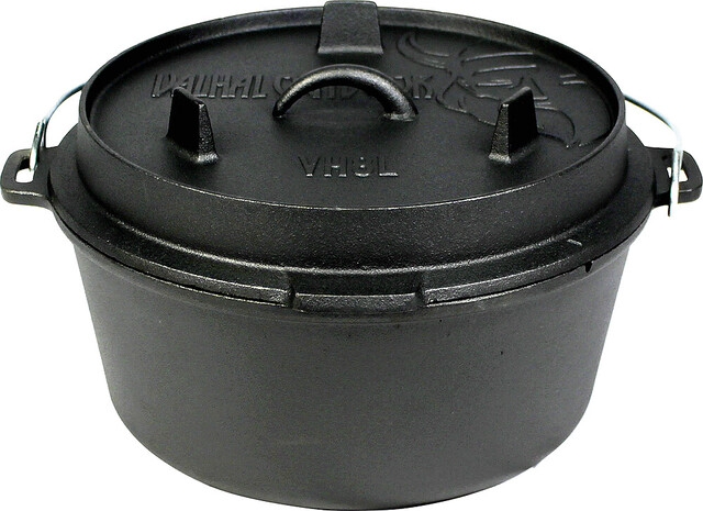VALHAL OUTDOOR Feuertopf Dutch Oven Gusseisen flacher Boden 8 l