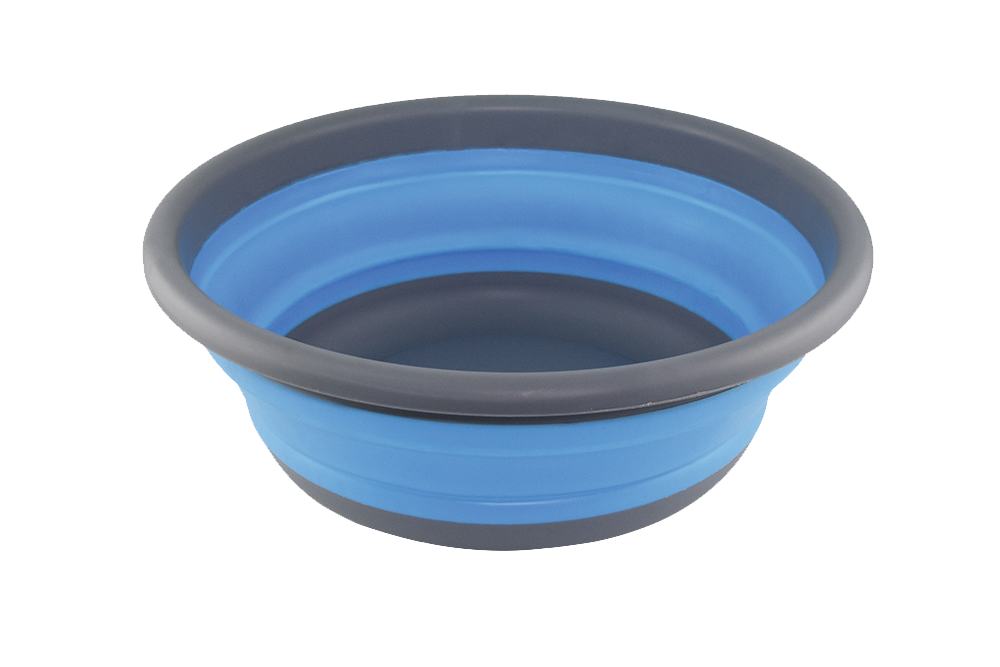 Volumen 9 l. Höhe ca. 14 cm, ø oben ca. 37,5 cm, gefaltete Höhe ca. 5 cm.