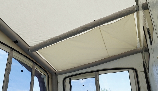 Der Dachhimmel für das Modell PLUTO 2.0 ist der ideale Begleiter. Bestehend aus 100 % Baumwolle und passend für Ihr Modell, werden die einzelnen Elemente in die bereits vorhandenen Haken an den Luftschläuchen eingehangen. Somit reduziert es die Luftfeuchtigkeit bei feuchtem Wetter, in Ihrem Zelt. Durch die atmungsaktive Eigenschaft nimmt das Material die Feuchtigkeit auf und verhindert das Aufsteigen der Feuchtigkeit an die Decke. Somit wird Kondensation und die Tröpfchenbildung an der Decke vermieden.