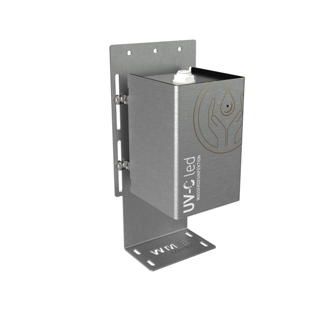 UV-C LED Wasserdesinfektionseinheit Edelstahl Boden-Befestigungswinkel zur frei stehenden Montage.