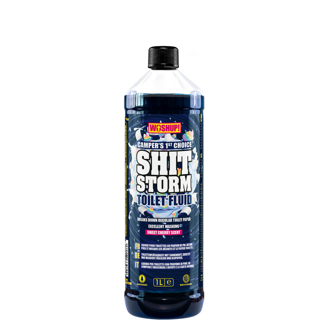 Der SHIT STORM zersetzt Fäkalien und Toilettenpapier zu einer homogenen Flüssigkeit. Er überdeckt Toiletten-Gerüche und maskiert zuverlässig und effektiv mit dunklem Farbstoff. Biologisch abbaubar.