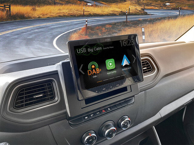 Komplett-Einbausatz zur Installation von ZENEC und XZENT 1-DIN und 2-DIN Geräten im passend für Renault Master III Facelift ab Modelljahr 2019, sowie technisch baugleichen Fahrzeugen einschließlich den Reisemobilen, welche ab Werk mit einem 1-DIN DAB/FM Radio bestückt sind.