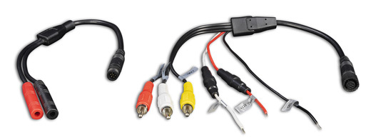 Adapterkabel Set für den Anschluss der Zenec-Kamera (ZE-RVSC200) und eines Moni-/Naviceiver (mit Cinch-Eingängen für Rückfahrkameras) an ein im Fahrzeug vorverlegtes CAMOS-6pin-Systemkabel mit Schraubanschlüssen. (z.B. ADRIA & HYMER Reisemobile).